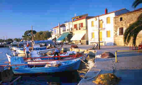 | Wohnen In Skala Polichnitos gibt es Frühstück am Strand, 12 Zimmer mit Bad, sechs davon mit kleiner Küche und Aussicht über den Golf. Eine Bibliothek steht zur Verfügung und ein großer Saal. |