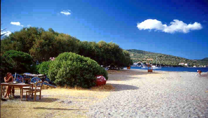 | Wohnen In Skala Polichnitos gibt es Frühstück am Strand, 12 Zimmer mit Bad, sechs davon mit kleiner Küche und Aussicht über den Golf. Eine Bibliothek steht zur Verfügung und ein großer Saal. |
